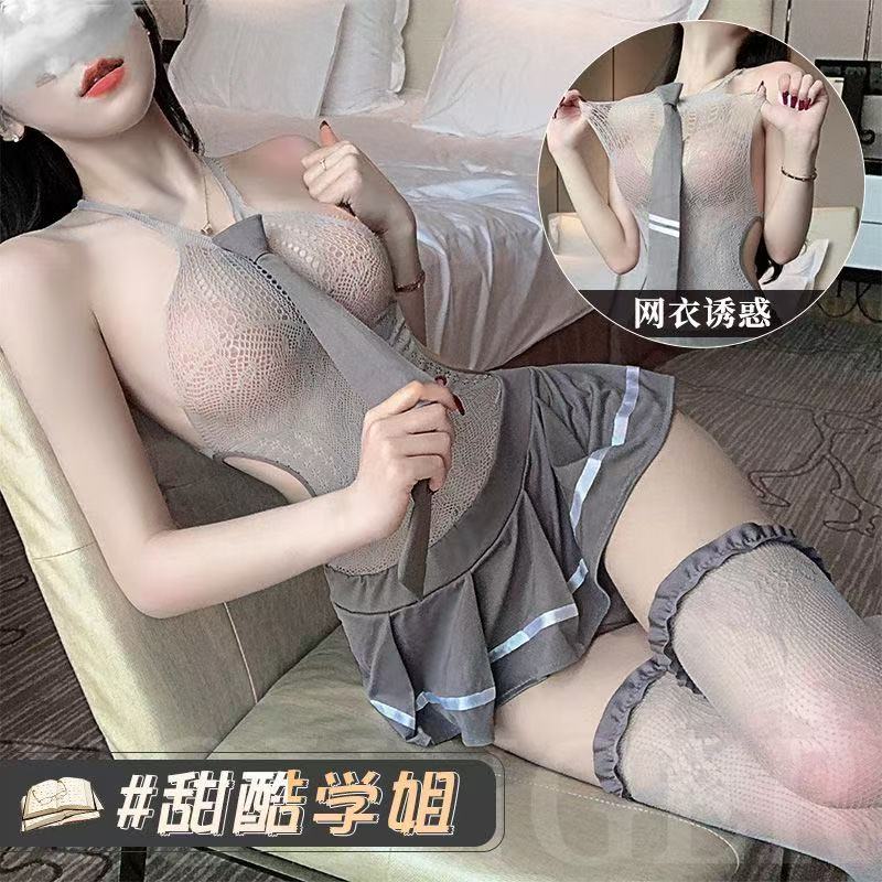 [霏慕]甜酷学妹网衣裙套装(均码)(7441)(灰色)1件/袋情趣内衣成人情趣店8-031